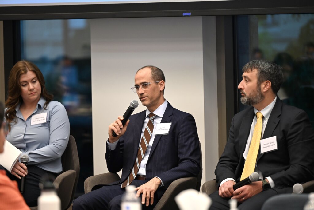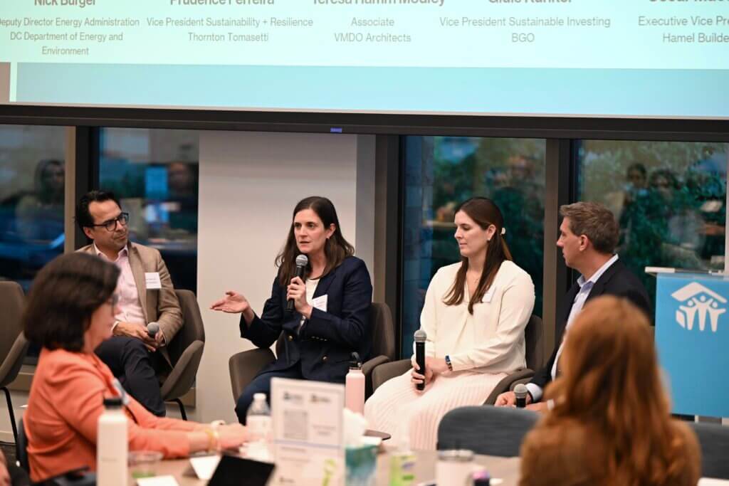 Our second panel featuring Prudence Ferreira, Thornton Tomasetti, Matt Fine, Peabody Fine Architects, Dan Hines, Kelly Renaud, and Michael Spotts, Habitat DC-NOVA and moderated by Nick Burger reflected on sustainable building in practice. Panelists shared how and why sustainability is embedded in Habitat DC-NOVA’s approach by highlighting both past achievements and current developments. In addition, panelists discussed the importance of working with local, city, and state governments to achieve their goals.